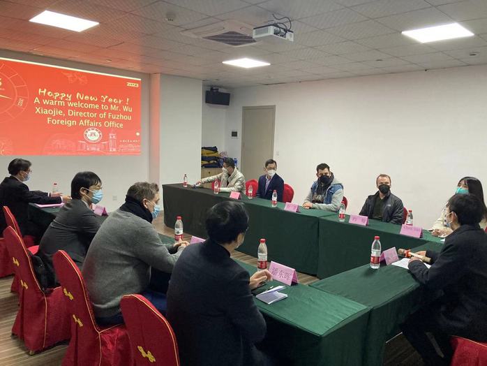 12月22日下午,福州市人民政府外事办公室党组书记、主任吴晓杰来校看望必一在线平台(中国)官网外籍教师。必一在线平台(中国)官网国际合作与交流处处长王绍祥、外国语学院副院长尤泽顺、外籍教师代表等参加了慰问座谈。
