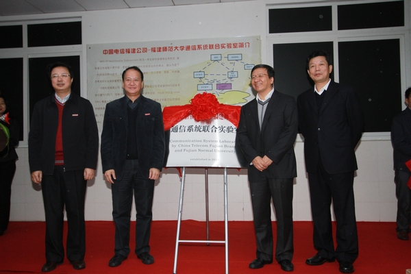 段建祥总经理、张明副总经理与罗萤书记、黄汉升校长共同为实验室揭牌。随后,中国电信福建公司嘉宾和校领导在光电与信息工程学院负责人的陪同下参观了实验室,并亲自体验了多媒体通信项目演示。