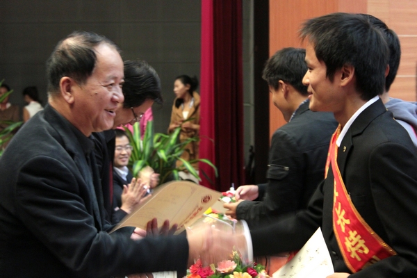 李敏副校长宣读了2011-2012学年国家奖学金获得者以及受省级、校级表彰的学生集体和个人名单。校长特别奖学金获得者应向阳同学和福建省先进班集体班长张曼同学分别代表受表彰学生和受表彰先进班集体作了发言,与大家分享他们成功的经验。