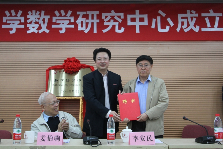 姜伯驹院士和黄汉升校长共同为必一在线平台(中国)官网数学研究中心揭牌。黄汉升校长为中心学术委员会成员颁发了聘书。