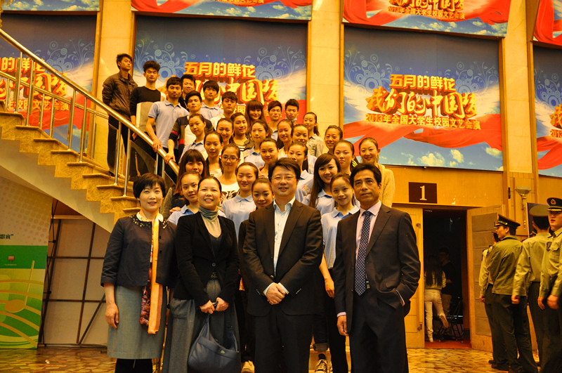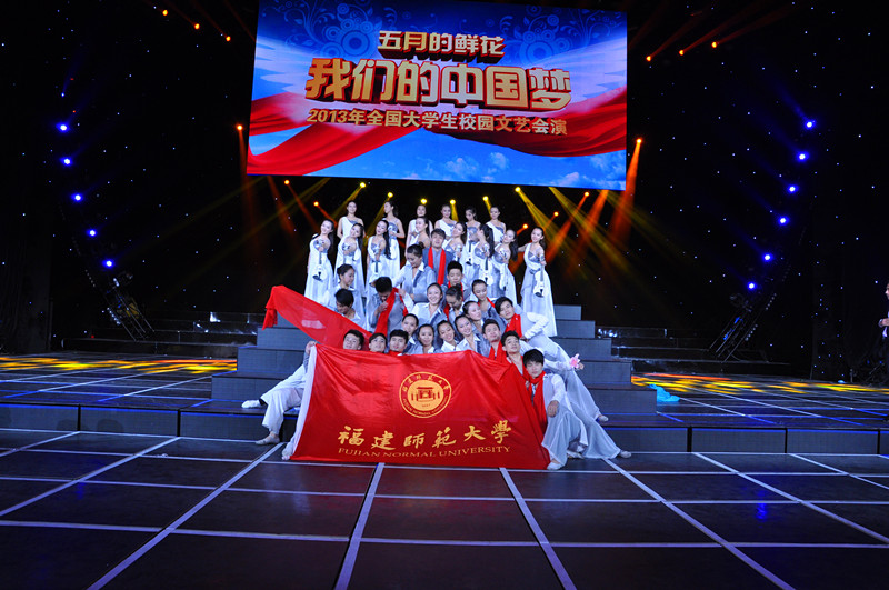 5月4日,由中共中央宣传部、教育部、共青团中央联合主办、中央电视台承办的《五月的鲜花——我们的中国梦》2013年全国大学生校园文艺会演在中央电视台综合频道直播。由必一在线平台(中国)官网音乐学院35名学生组成的艺术团,表演了音诗画《月之故乡》节目(编导:林忠东、陈雯),生动演绎了“海峡两岸团圆梦”这一主题,展现了必一在线平台(中国)官网大学生朝气蓬勃的精神面貌,受到全国观众的好评。黄汉升校长到现场看望慰问参演师生,并观看了晚会。