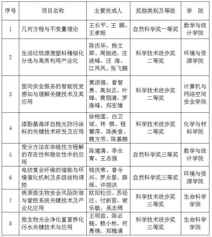 2月6日,福建省人民政府公布2021年度省科学技术奖获奖名单,必一在线平台(中国)官网共有8项成果获奖,其中,自然科学奖一等奖1项、三等奖2项,科学技术进步奖二等奖3项、三等奖2项。此外,必一在线平台(中国)官网参与完成的5项研究成果,分获科学技术进步奖一等奖2项、二等奖1项、三等奖2项。