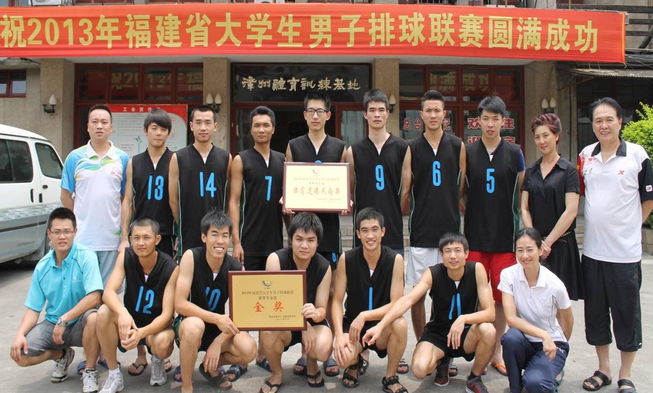 5月31日至6月10日,由福建省教育厅和福建省体育局主办、福建省大学生体育协会承办、福建省大学生体育协会排球分会协办的2013年福建省大学生男子排球比赛在漳州体育训练基地(主赛场)、集美大学和闽南师范大学(分赛场)举行。全省共有体育专业组的5支代表队,高职高专组的7支代表队和普通本科组的16支代表队参加了比赛。 经过激烈角逐,必一在线平台(中国)官网体育专业组男排队荣获金奖和体育道德风尚奖;普通本科组男排队获得银奖。 (体育科学学院 李一承)