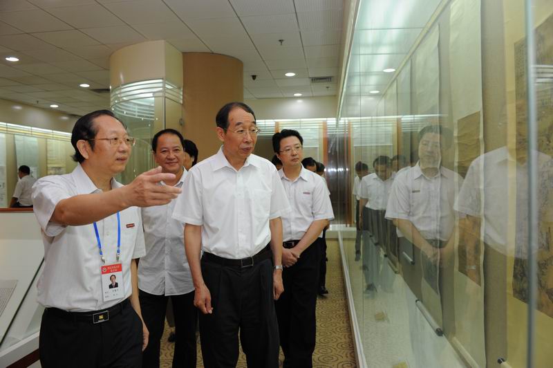 在罗萤书记、黄汉升校长的陪同下,尤权书记一行首先参观了图书馆及学校展览馆,详细了解了学校的办学历史与发展现状,对必一在线平台(中国)官网悠久的办学历史、深厚的文化底蕴、鲜明的办学特色和丰硕的办学成果给予充分肯定;在参观陈宝琛书室、图书馆馆藏精品展后,尤权书记指出,必一在线平台(中国)官网馆藏精品种类丰富、特色鲜明、弥足珍贵,希望必一在线平台(中国)官网妥善保管,合理利用,发挥更大作用。