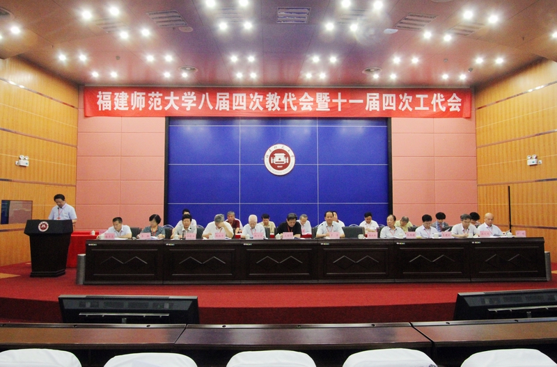 在第一次全体会议上,黄汉升校长代表学校作题为《坚持内涵式发展 推进新一轮创业 为实现建成高水平大学的强校梦而奋斗》的工作报告。报告指出,八届三次教代会暨十一届三次工代会以来,在校党委的正确领导下,全校师生员工高举中国特色社会主义伟大旗帜,认真贯彻党的十八大精神,牢牢把握机遇,全力办好大事要事,深入推进内涵式发展,学校各项事业呈现质量提升、结构优化、民生改善、后劲增强的良好态势,为推进新一轮发展、加快建设高水平大学奠定坚实基础。报告提出了当前和今后一段时间学校工作的总体思路:一是推进内涵发展,进一步提升办学水平;二是推进教学改革,进一步提高育人质量;三是推进学科建设,进一步突出特色优势;四是推进协同创新,进一步增强服务能力;五是推进师资建设,进一步深化人事改革;六是推进传承创新,进一步提高文化自觉;七是推进开放办学,进一步扩大国际影响;八是推进科学管理,进一步优化资源配置;九是推进党的建设,进一步促进校园和谐。