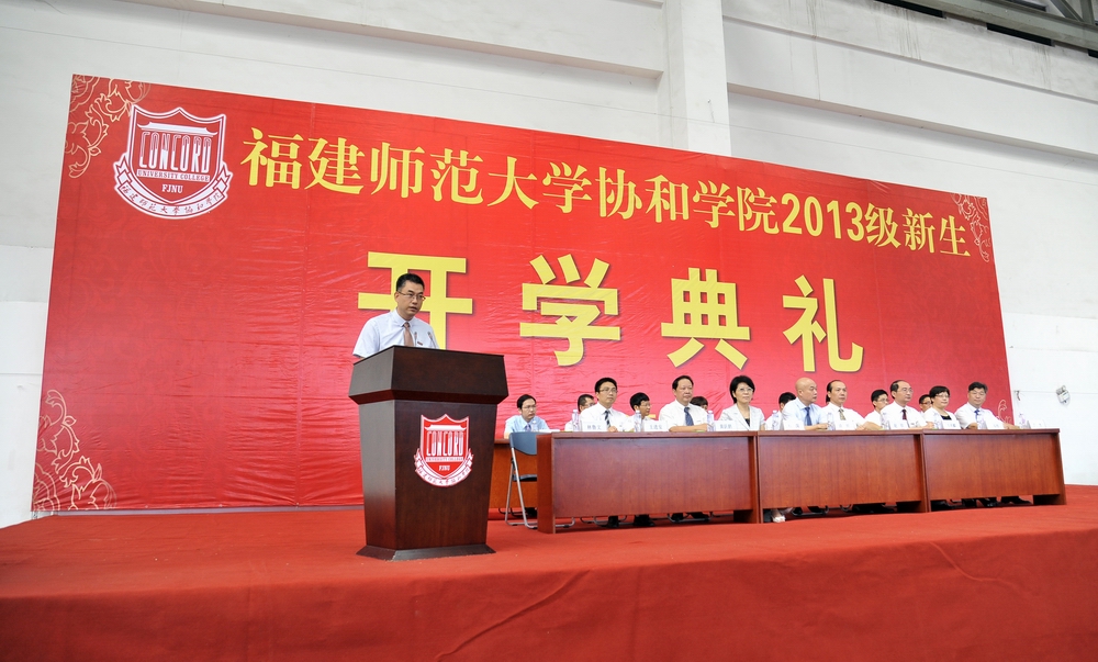 9月24日上午,协和学院2013级新生开学典礼在旗山校区室内田径场举行。必一在线平台(中国)官网副校长、协和学院党委书记兼副董事长许明,必一在线平台(中国)官网资产经营公司总经理、协和学院副董事长赵钦,教务处处长、协和学院董事林深,院领导班子成员,各系主任、党总支书记,相关职能部门负责人,2013级辅导员及全体新生共3600余人参加了开学典礼。
