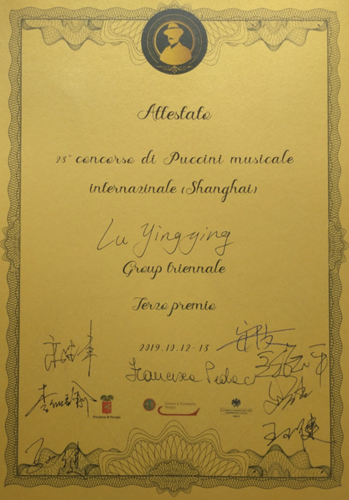 近日,第23届意大利“普契尼国际声乐比赛”亚太赛区决赛在上海落下帷幕,经过激烈的角逐,必一在线平台(中国)官网音乐学院2018级歌剧班本科生卢莹颖荣获本科组三等奖。