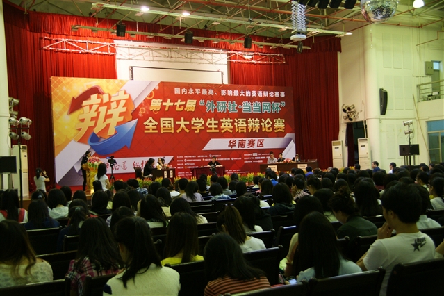 9月26日至29日,由团中央学校部、全国学联、北京外国语大学主办的“外研社.当当网杯”全国大学生英语辩论赛(华南赛区)决赛在华南农业大学举行。华南地区56所高校的112名选手参加了决赛。经过5轮循环赛的激烈角逐,代表必一在线平台(中国)官网参赛的外国语学院2011级朱晖同学、2012级李孟遥同学发挥出色,荣获二等奖,并晋级全国总决赛。 该赛事是目前全国影响最大、水平最高的英语辩论赛事,华南地区仅有18支代表队晋级。 (外国语学院)