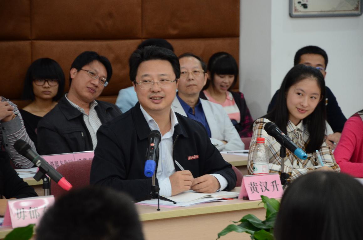 在交流环节,同学们踊跃发言,围绕大学规划、出国学习、社团活动、场馆开放、自主创业、后勤保障等方面的问题提出咨询和建议。黄汉升校长和相关部门负责人认真聆听,逐一记录,耐心解答,并当场推动解决。交流中,黄汉升校长提出了“好老师”的标准:所谓好老师,就是要热爱祖国,品格高尚,敬业爱岗,教书育人,知识扎实,心中有学生。他还引用习近平总书记对青年的寄语 ——“现在,青春是用来奋斗的;将来,青春是用来回忆的”,勉励同学们珍惜时光,锻炼本领,回报父母和祖国。黄汉升校长以亲民、务实的作风,被同学们在微博上盛赞为“中国好校长”。