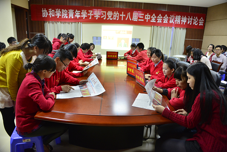 与会人员观看了党的十八届三中全会相关视频,进一步了解与学习全会召开的背景与意义、会议公报的内容与精神要点。师生围绕全会提出的“全面深化改革的总目标”、“六大领域改革”以及设立“中央全面深化改革领导小组”与“国家安全委员会”等内容,结合青年关注的时政热点进行交流与讨论。师生们表示,全会进一步明确了党在新时期的目标、任务与作为,大家通过学习活动增强了对中国特色社会主义的道路自信、理论自信、制度自信。