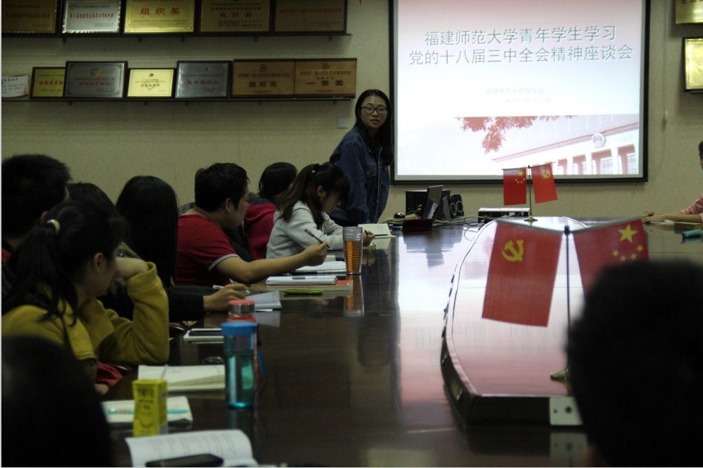 11月9日--12日,党的十八届三中全会在京举行。为深入学习贯彻全会精神,11月13日下午,由校学生会组织的青年学生学习党的十八届三中全会精神座谈会在旗山校区大学生素质拓展中心举行。校团委机关老师,青年学生代表50多人参加座谈。