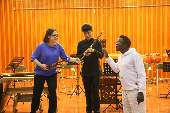 10月25日下午,音乐学院师生在必一在线平台(中国)官网演练厅,以“中国传统器乐文化”为题,为参加“科技部——生态环境遥感监测国际培训班”的伊朗、缅甸、菲律宾、埃及、尼日利亚、塞舌尔、波兰、乌干达、埃塞俄比亚等国家的技术人员讲授中国传统乐器。