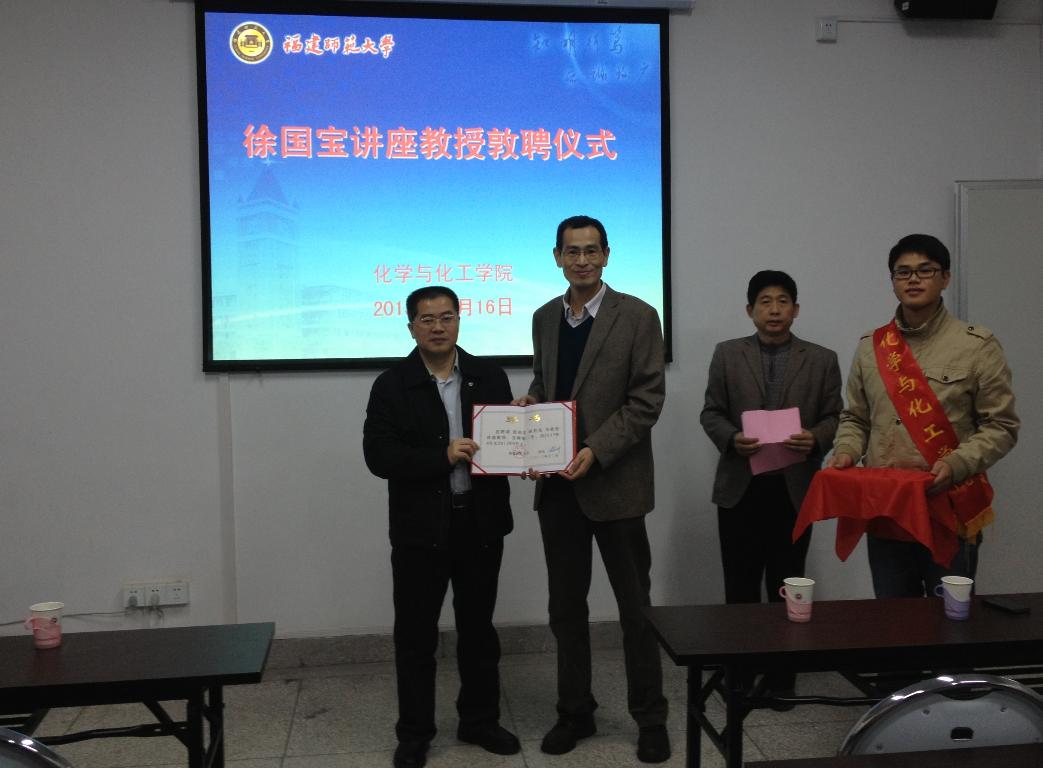 徐国宝研究员对受聘表示感谢,并表示今后将积极支持化学与化工学院的学科建设事业,为学校和学院的发展贡献力量。