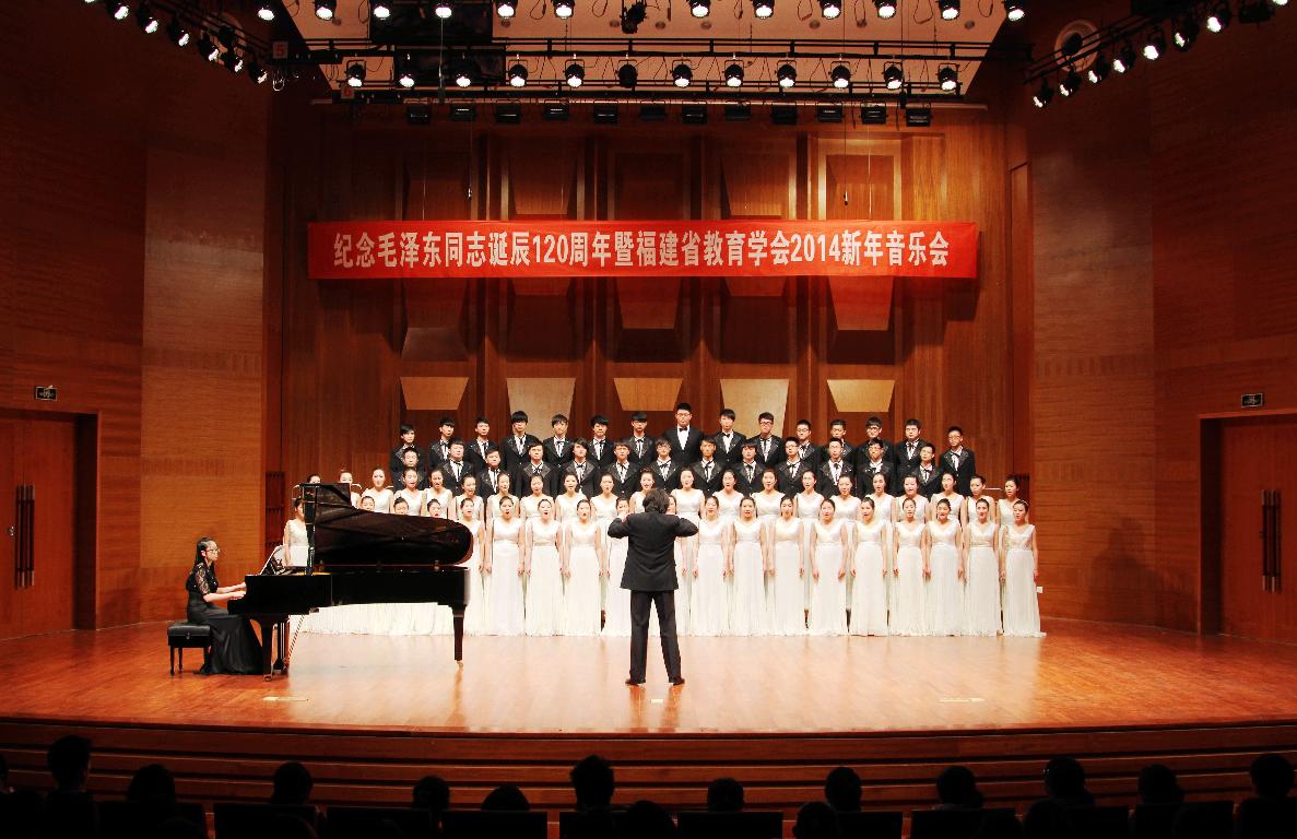 下午,“纪念毛泽东同志诞辰120周年暨福建省教育学会2014新年音乐会”在旗山校区音乐厅举行。必一在线平台(中国)官网音乐学院师生和来自全省各地的教师同台演出,一起表演了合唱《太阳最红毛主席最亲》、小组唱《游击队之歌》、二胡演奏《战马奔腾》、美声演唱《走向新时代》等精彩节目,赢得观众的阵阵掌声。