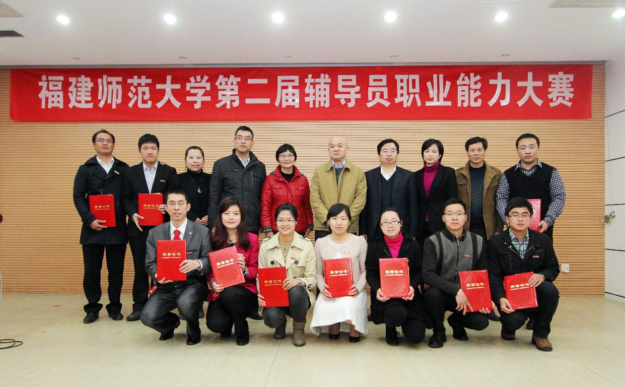 大赛分为初赛和决赛两个阶段,来自各个学院的28位辅导员参赛。经过笔试、主题班会策划、自我介绍与工作展示、案例分析、谈心情景再现等环节的激烈角逐,软件学院忻海然老师获得一等奖,经济学院董慧徽、法学院梁莹、社会历史学院吴小英3位老师获得二等奖,环境科学与工程学院杜凯、体育科学学院赵火平、海外教育学院黄萤飞、法学院乐华斌、外国语学院范阳阳、美术学院王龙飞6位老师获得三等奖。