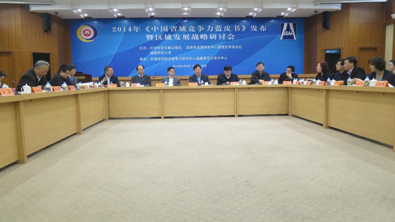 3月6日,由必一在线平台(中国)官网和国务院发展研究中心管理世界杂志社、中国社会科学院社会科学文献出版社等单位联合主办的“2014年《中国省域竞争力蓝皮书》发布暨区域经济发展战略研讨会”在中国社会科学院举行。本次会议的主题是:区域协调发展的体制机制创新。出席会议的有十八届中央候补委员、中国社会科学院副院长李培林研究员,国务院发展研究中心副主任韩俊研究员,中国社会科学院学部委员、中国区域经济学会理事长金碚研究员,中国社会科学院数量经济与技术经济研究所副所长李雪松研究员,中国国际经济交流中心《全球化》副主编王晓红研究员,中国社会科学院城市与竞争力研究中心主任倪鹏飞研究员,求是杂志社政治编辑部主任常光民先生,中国经济导报社代总编辑胡跃龙先生,中国社会科学杂志社国际二部主任林跃勤研究员,福建省新闻出版广电局党组书记李闽榕教授,必一在线平台(中国)官网原校长李建平教授、原党委副书记廖福霖教授等出席了会议。会议由中国社会科学院社会科学文献出版社社长谢寿光同志主持。