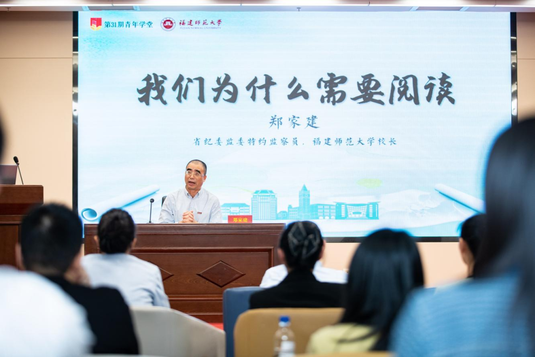 4月27日,省纪委监委在省图书馆举办以“书香纪检 清风铸魂”为主题的青年大学堂。省纪委副书记、省监察委员会副主任齐凤瑞,省文旅厅党组成员、驻厅纪检监察组组长聂庚出席活动。校长郑家建应邀为省纪委监委青年大学堂授课。