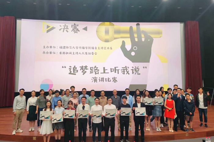 10月25日,传播学院在星雨剧场举办卓越新闻主持人之“追梦路上听我说”演讲比赛决赛。传播学院党委书记刘舒平、院长谢宗贵、副书记黄宁,实践实验中心负责人以及播音与主持艺术系师生观看了比赛。比赛邀请福建省广播影视集团首席主播任航、福州电视台节目主持人黄小萍、人民网福建频道采编中心全媒体制作部副主任郑窈以及福建省广播影视集团987私家车广播记者、主持人林超艺四位媒体人担任专家评委。