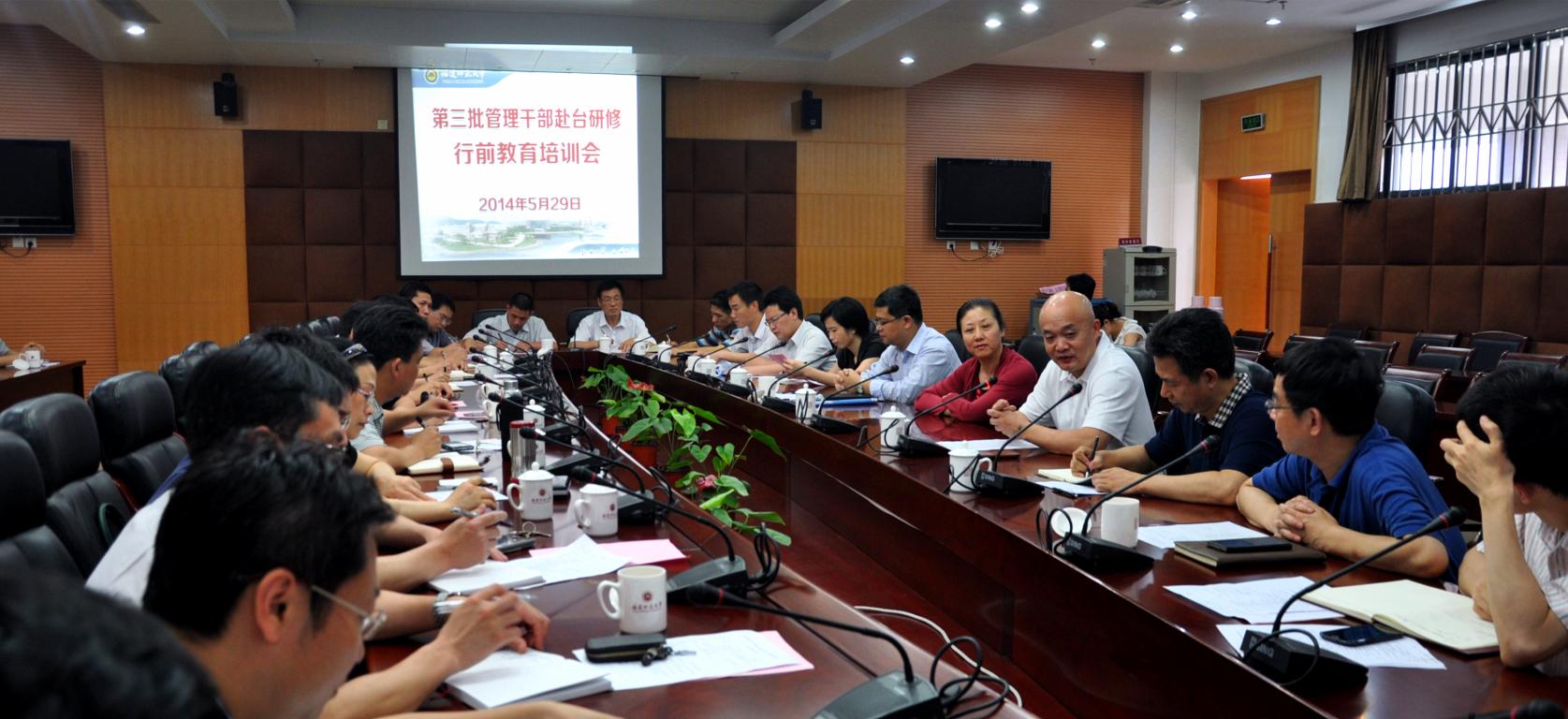 培训会于5月29日下午在旗山校区第十会议室举行。省台办调研员陈锦菱,必一在线平台(中国)官网副校长许明,组织部、人事处、港澳台办负责人等出席了会议。全体赴台研修管理干部参加了培训。
