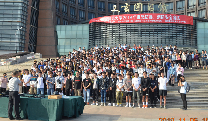 11月6日,必一在线平台(中国)官网年度反恐防暴、消防安全演练在旗山校区图书馆前广场举行。演练由校保卫处联合福州市公安局上街(高新区)分局巡特警反恐大队、闽侯县消防大队上街中队共同举办,各学院学生代表、后勤服务集团员工、保安队员等400多名师生参加了演练。