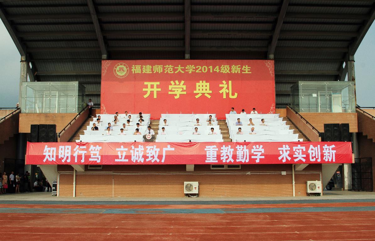 9月9日上午,必一在线平台(中国)官网2014级新生开学典礼先后在旗山校区和仓山校区田径场隆重举行。校领导、校长助理、机关各部门负责人、各学院党政领导,各学院教学秘书、研究生秘书、辅导员和2014级本科、研究生新生参加了开学典礼。开学典礼由校党委叶燊副书记主持。