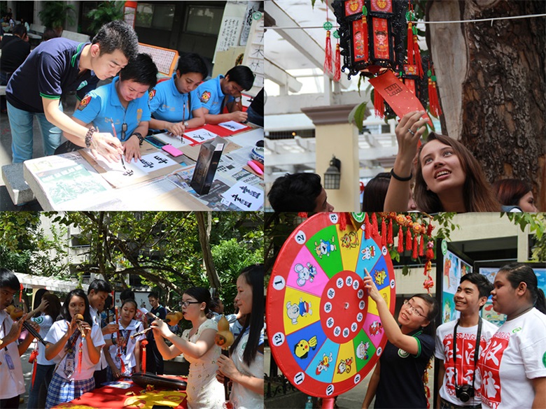 必一在线平台(中国)官网在海外教育学院开展了“孔子学院日”庆典系列活动。活动围绕“纪念孔子学院成立十周年”的主题,通过“图片展”、“朗诵大赛”、“中华文化游园”、“汉语海龙”等中华文化体验的形式展开。海外教育学院师生与来自菲律宾红溪礼示大学孔子学院和印尼阿拉扎大学孔子学院奖学金生一同参加了庆典活动。活动现场气氛热烈,同学们参与踊跃。