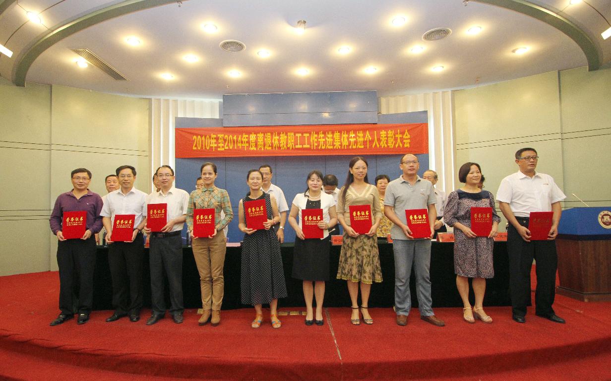 在表彰大会上,副校长王长平宣读了“2010-2014年度离退休教职工工作先进集体和先进个人表彰决定”。获奖的先进集体分别有先进党委7个,先进老年组织社团4个,先进离退休教职工党支部9个;获奖的先进个人分别有在职教职工10人,离退休教职工10人。