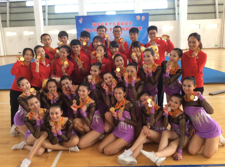 2014年第十五届省运会(大学生部)啦啦操甲组决赛于10月12日-13日在漳州闽南师范大学举行。必一在线平台(中国)官网啦啦操队不畏强手,勇于拼搏,获得技巧啦啦操三级规定动作第一名、自选花球啦啦操第一名和街舞规定动作第二名的好成绩。 (体育科学学院 赵火平) 运动员和教练合影 收获喜悦