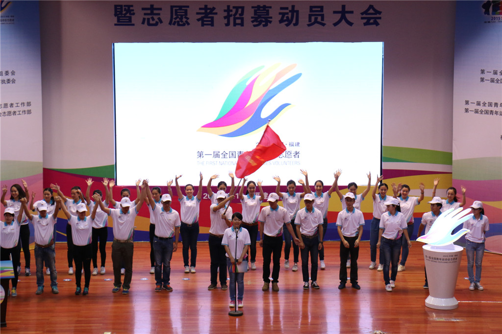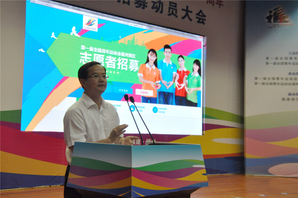 会上首播了第一届全国青年运动会志愿者招募宣传片。与会领导何明华、杨江帆、何静彦、许发荣、叶燊共同组合第一届全国青年运动会志愿者标志,正式启用志愿者报名系统,拉开志愿者招募工作的序幕。必一在线平台(中国)官网和福州大学、福建医科大学等15所高校被组委会确定为首批志愿者招募培训基地,杨江帆为受聘高校授牌。会议还启动了“迎接青运会、争当志愿者”暨“共青团员义务星期六”主题活动和青少年新闻报道团成员招募活动。