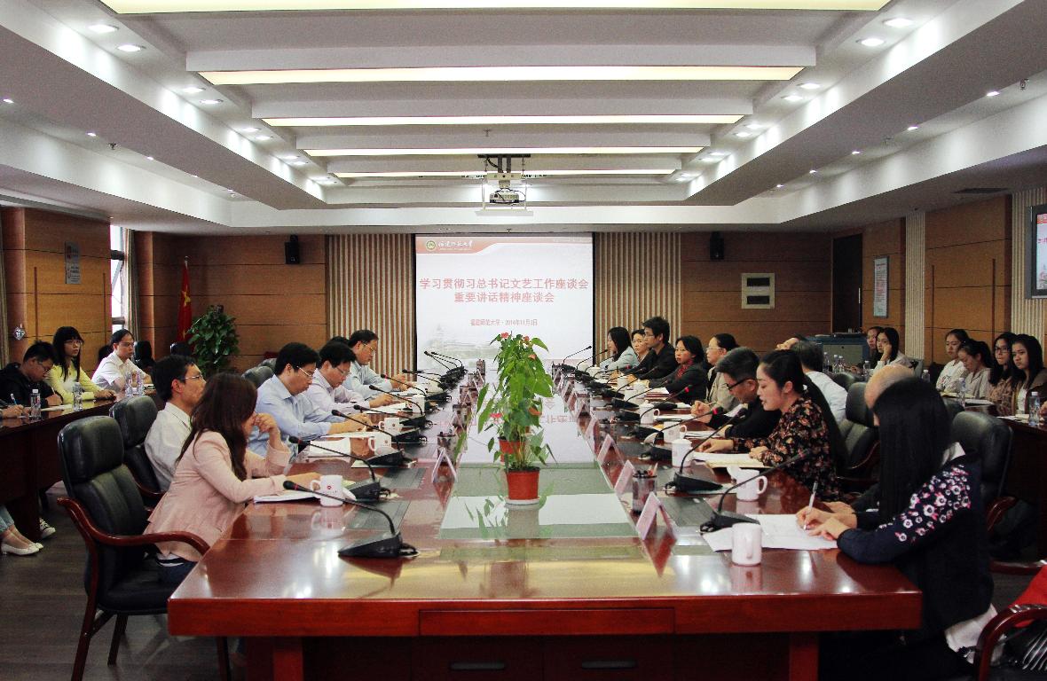 座谈会上,与会师生紧紧围绕习近平总书记在文艺工作座谈会上的重要讲话精神,结合自身的教学、创作和学习实际,畅谈了自己的学习体会。大家一致认为,习总书记的重要讲话充分体现了党中央对文艺工作的高度重视、对文艺工作者的亲切关怀、对文艺事业繁荣发展的殷切期望,是指导当前和今后一个时期党的文艺工作的纲领性文献。大家纷纷表示,要自觉把思想和行动统一到总书记的讲话精神上来,切实增强文艺工作的自觉性和坚定性,为推动文艺特别是校园文艺的繁荣发展做出自己应有贡献。