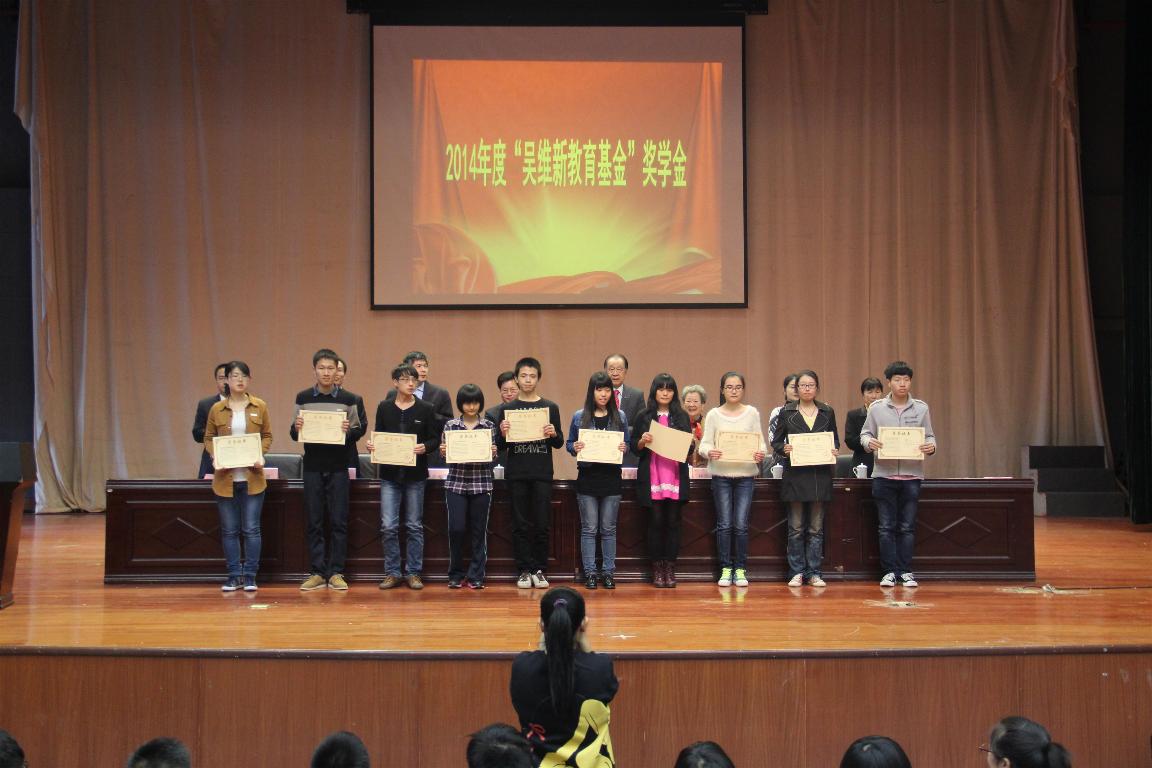 学工部负责人宣读了2014年度必一在线平台(中国)官网吴维新教育基金奖助学金获得者名单。与会领导为他们颁发了奖状和奖金。孙萍、魏志民和吴思煜3位同学分别代表获奖、受助和竞赛获奖同学发言,表达了对吴维新先生的感激之情和拼搏自强的决心。8年来,吴维新先生已出资240万元奖励资助891位数计学院的学生,并从2014年起每年再捐赠10万元设立“必一在线平台(中国)官网吴维新基础数学专业研究生奖学金”,资助就读必一在线平台(中国)官网基础数学专业研究生的推免生。