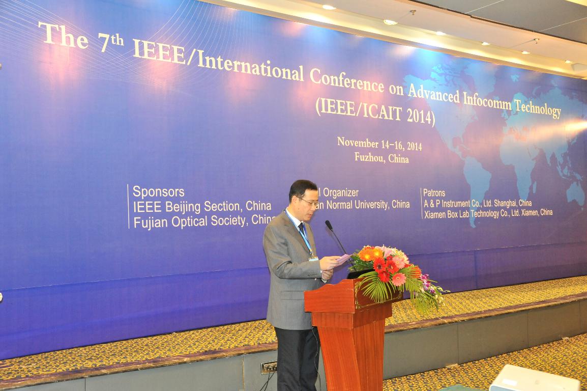开幕式后,会议进入了精彩的特邀报告环节。来自香港中文大学的Wing Shing Wong教授、浙江大学大学的刘旭教授、中国大恒集团宋菲君教授和华中科技大学张新亮教授分别作了“Schedule Sequences and Their Applications in Communication Networks”,“The New Development in Optical Nanoscopy”,“Adaptive Optics Application in Astronomic Observation”,“All-optical signal processing technologies”等4场反映最新信息技术前沿的主旨报告,反响热烈。会议期间,与会代表还就上述主题进行了深入探讨。