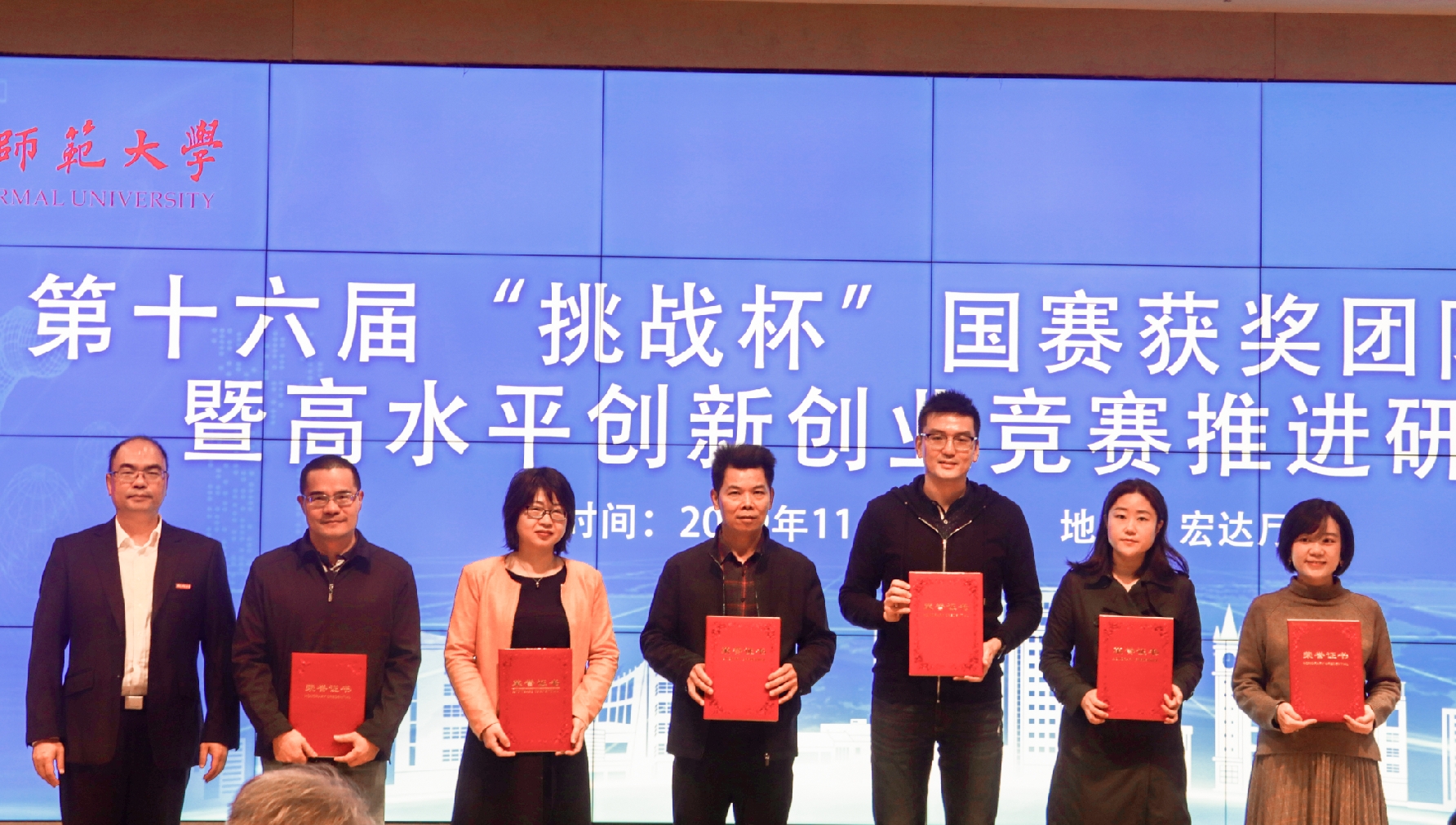 11月20日上午,第十六届“挑战杯”国赛获奖团队分享会暨高水平创新创业竞赛推进研讨会在旗山校区宏达厅隆重举行。校领导李宝银、黄清波、赖海榕、涂荣,国赛获奖团队指导老师及参赛同学代表,相关部处负责人,各学院党政主要负责人、团委书记和负责创新创业工作辅导员共100余人参加会议。会议由副校长涂荣主持。