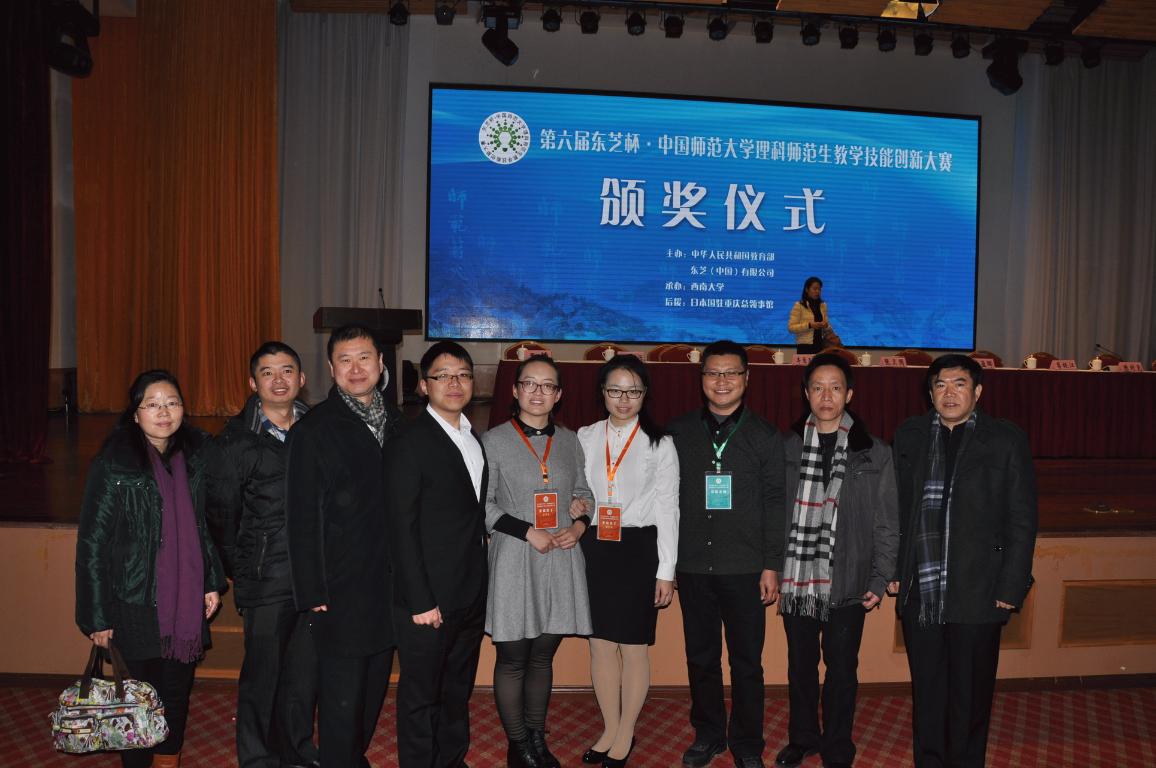 1月11日至12日,由教育部主办的全国师范生最高规格教学技能大赛——第六届“东芝杯•中国师范大学理科师范生教学技能创新大赛”在重庆西南大学举行。本届大赛有来自北京师范大学等全国41所师范大学参加,各校派出数学、物理、化学等专业共122名优秀师范生参赛,每学科只取前10名分获一二三等奖。经过2天的激烈比赛,必一在线平台(中国)官网物理学科郑荣炜同学获三等奖(指导老师:黄树清、王素云、林钦;顾问:章镇),数学学科刘诗雨同学(指导老师:董涛)、化学学科赵佳星同学(指导老师:胡志刚、陈燕)获优秀奖。