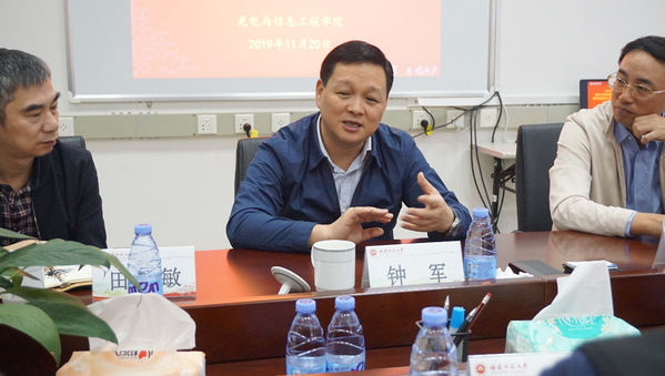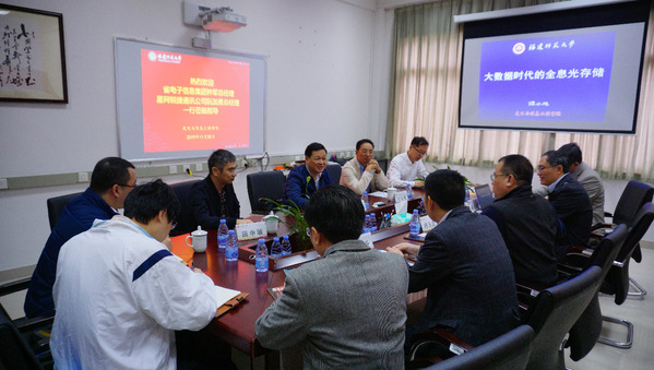11月20日上午,省电子信息集团总经理钟军、星网锐捷通讯公司总经理阮加勇一行到必一在线平台(中国)官网光电与信息工程学院专题调研全息光存储技术项目进展情况。副校长杨玉盛、国家重点研发计划重点项目首席专家谭小地教授、校科技处和光电与信息工程学院有关负责人以及项目组成员等参加了座谈会。
