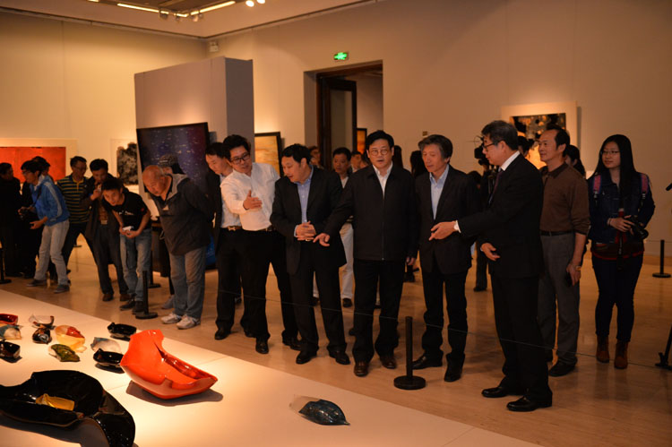 黄汉升、徐里、范迪安分别在开幕式上致辞,向汤志义大漆艺术展的成功举办表示热烈祝贺,指出汤志义教授作为当代漆画创作与学科建设的重要代表,在艺术道路上辛勤耕耘、不懈追求,取得十分丰硕的艺术成果,本次展览集中展示汤志义教授十年来精心创作的数十件艺术精品,为大家提供一场十分难得的艺术盛宴。汤志义教授最后致词,深情回顾自己追求漆画艺术的不平凡历程,并向领导嘉宾的支持表示感谢。