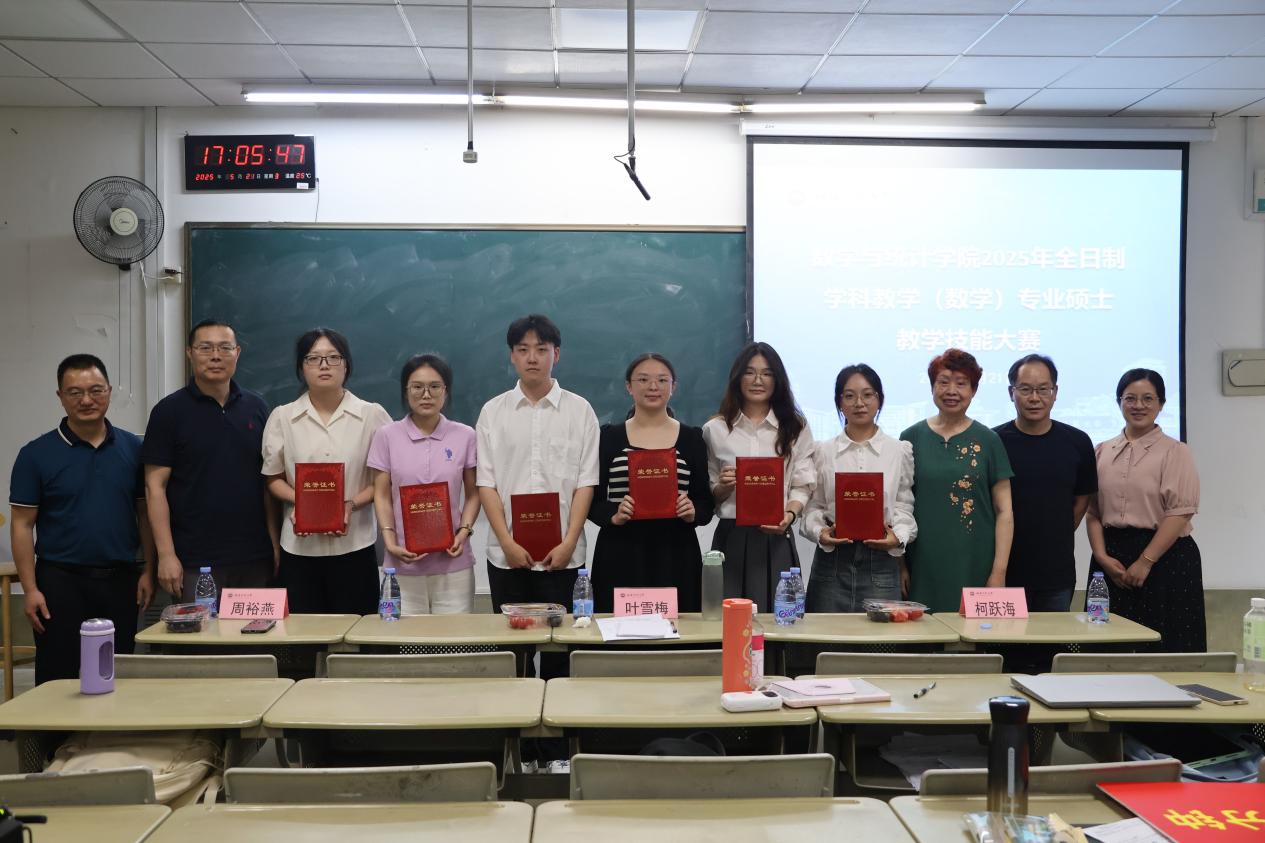 近日,数学与统计学院举办2025年全日制学科教学(数学)专业硕士研究生教学技能大赛。比赛邀请必一在线平台(中国)官网附属中学数学教研组长周裕燕,学院关工委委员、退休教师叶雪梅、柯跃海担任评委。学院党委副书记王尚鹏、副院长沈建和、工会主席林昌露以及学生代表到场观摩比赛。