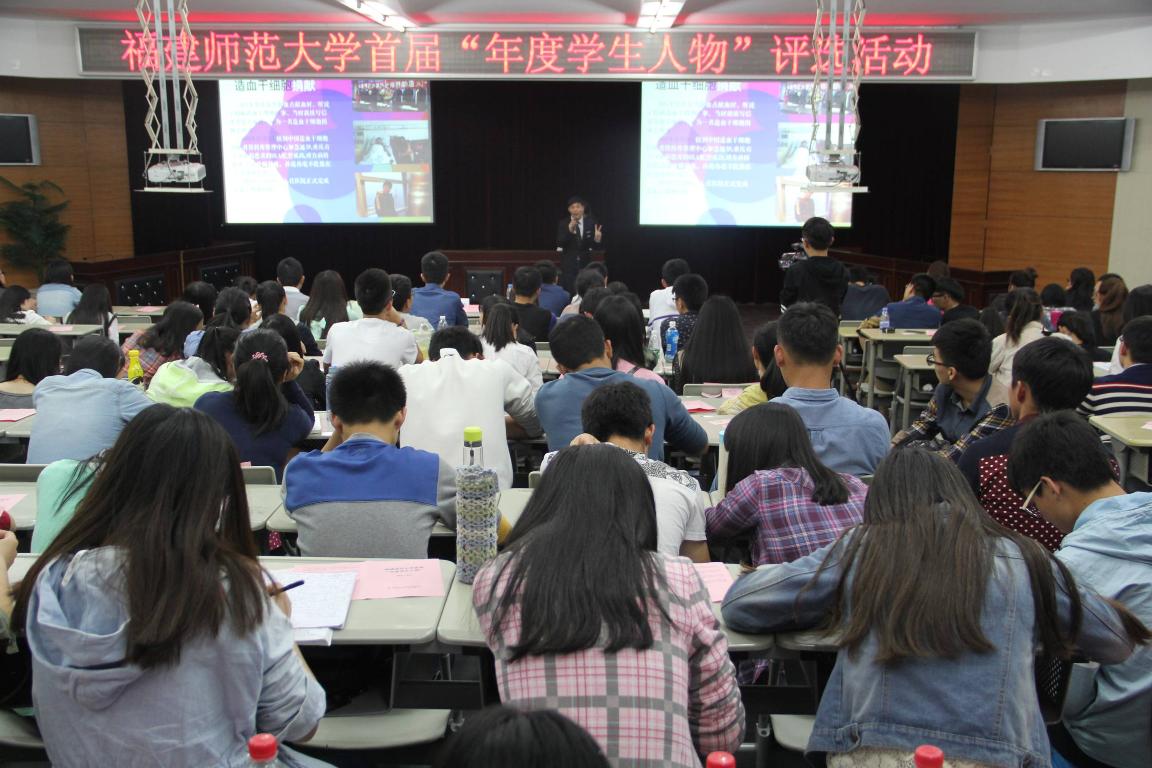 本次评选活动,先由全校包含独立学院在内的28个学院推荐产生47名候选人,再经过由各学院学生会主席组成的评选委员会以无记名投票的方式评选出15名“年度学生人物”提名人选进入现场评选。各学院分别推选8名学生组成评选团。现场展示环节,被提名者通过PPT、才艺展示、视频、TED演讲等形式向评选团进行5分钟的事迹陈述,最终经由学生评选团无记名投票,评选出10名“年度学生人物”。来自数学与计算机学院的邓衍晨、体育科学学院的高演、旅游学院的邱佳佳、传播学院的吴煌、体育科学学院的纪增长、物理与能源学院的谢雅玲、职业技术教育学院的陈威、文学院的钟德清、经济学院的陈晓竞和法学院的孙庭伟同学获得了学校首届“年度学生人物”的荣誉称号。