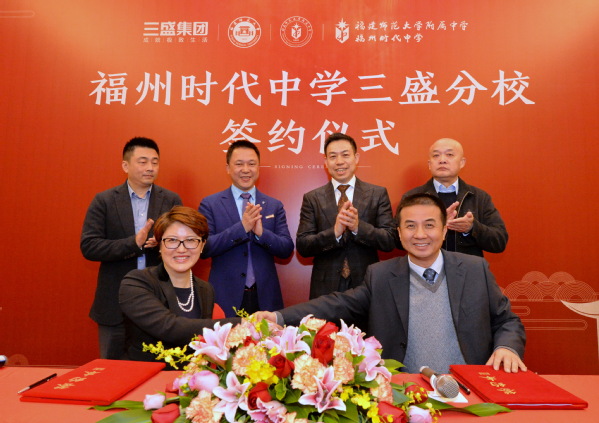 涂荣代表学校致辞,他简要介绍了学校及附属中学、时代中学办学历史和办学成效。涂荣强调,合作双方基于办学理念的契合,合作创办福州时代中学三盛分校,进一步彰显了必一在线平台(中国)官网和三盛集团致力于提升福建基础教育水平的使命和担当。作为合作方,必一在线平台(中国)官网将充分发挥在基础教育领域的独特优势,齐心协力把福州时代中学三盛分校打造成为一所校风优良、质量上乘、群众信赖的好学校。三盛集团林荣滨董事长在随后的致辞中表示,将秉持集团对产品精益求精的匠心追求以及对教育事业的敬意和责任,发挥地产与教育的协同效应,全力打造中国领先的教育生态,为办好人民满意的教育承担起企业应有的社会责任。
