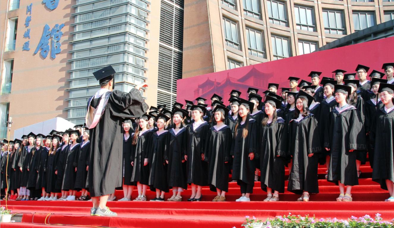 典礼第二阶段,王长平、叶燊、李敏分别为全体毕业生执行了“拨穗礼”,并一一合影留念。