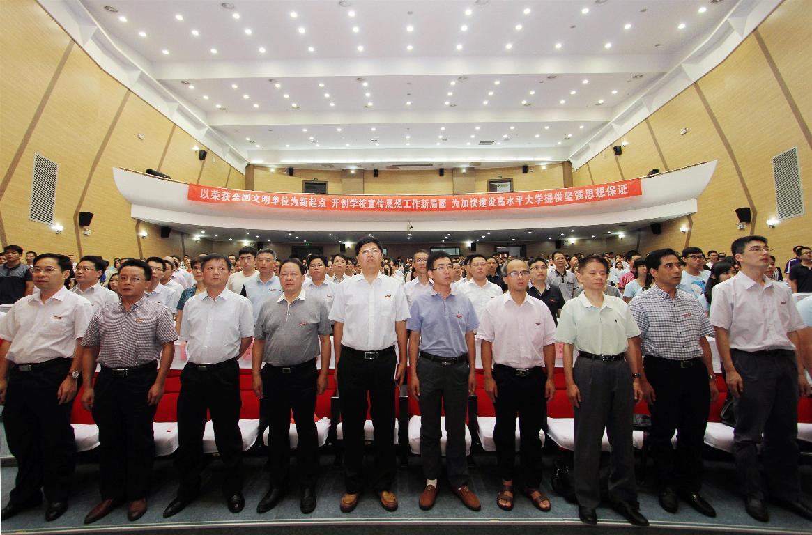 黄汉升指出,要提高认识,突出重点,进一步加强和改进学校宣传思想工作。充分认识到加强和改进宣传思想工作事关学校事业发展、事关学校和谐稳定、事关办学声誉。他对加强和改进新形势下学校宣传思想工作进行了部署。一要抓好思想引领,巩固壮大主流思想舆论;二要抓好教学改革,充分发挥课堂主渠道作用;三要抓好阵地管理,积极营造良好育人环境;四要抓好队伍建设,不断提升教师的育人水平;五要抓好学科引领,努力成为学习、研究、宣传马克思主义的示范阵地。黄汉升要求,各单位加强领导,强化责任,确保宣传思想工作和精神文明建设的各项任务落到实处。