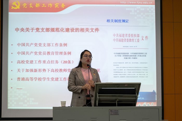 开班仪式后,校党委组织部党建办公室主任钟蕊受邀讲授第一专题《新时代党支部工作的规范和创新》,介绍党支部日常工作规范、党支部立项活动和主题党日活动工作创新,以及如何提升党支部凝聚力、战斗力等内容。