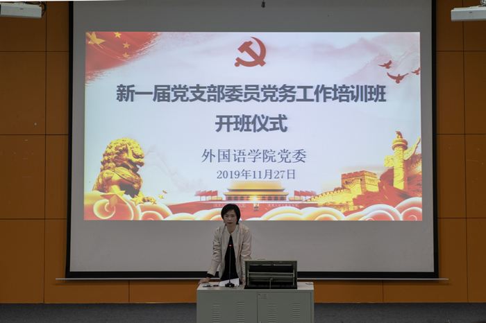 11月27日下午,外国语学院新一届党支部委员党务工作培训班在外语楼多功能厅举行开班仪式,学院党委委员、全体党支部委员参加了仪式。开班仪式由学院组织员王文协主持。