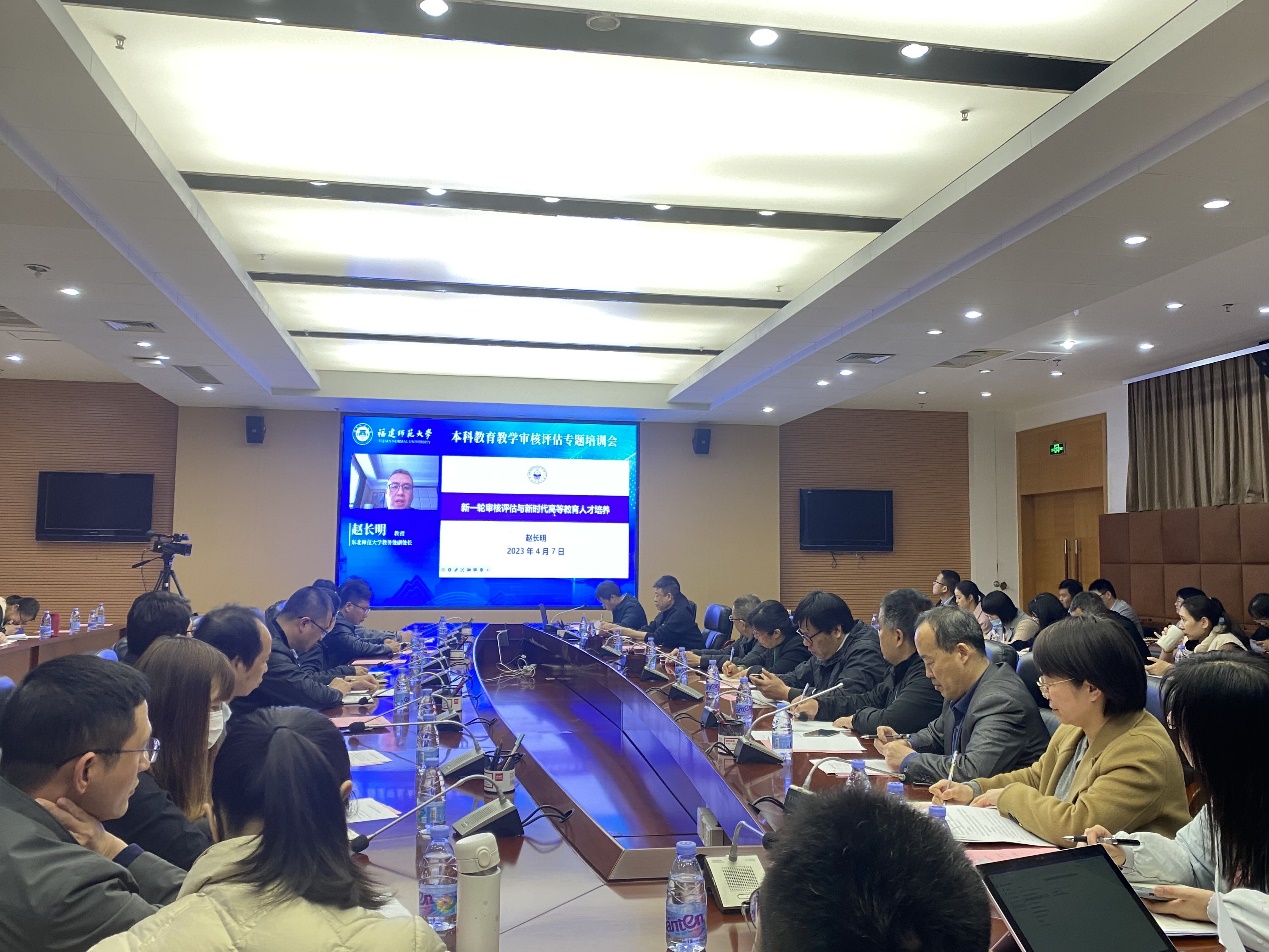 近日,必一在线平台(中国)官网在旗山校区第十会议室召开本科教育教学审核评估专题培训会,邀请东北师范大学教务处副处长赵长明教授作专题培训。培训会由校评建办副主任杨发福主持。会议在各学院设分会场,同步开展培训。