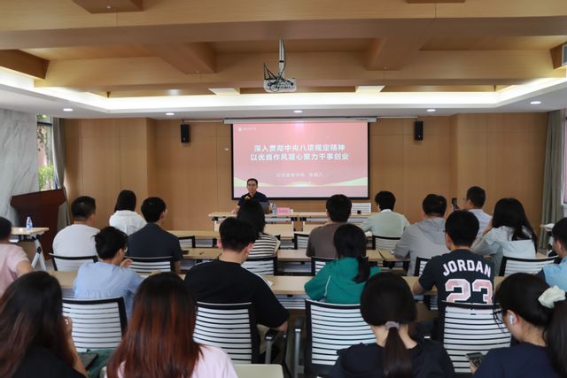 会上,陈超凡围绕中央八项规定精神的背景与意义、中央八项规定深刻影响和改变中国、违反中央八项规定精神的问题表现、锲而不舍落实中央八项规定精神等四个方面,结合理论阐释与实践案例,为师生党员深刻理解中央八项规定是长期有效的铁规矩、硬杠杠,落实中央八项规定及其实施细则精神提供了具体指导。