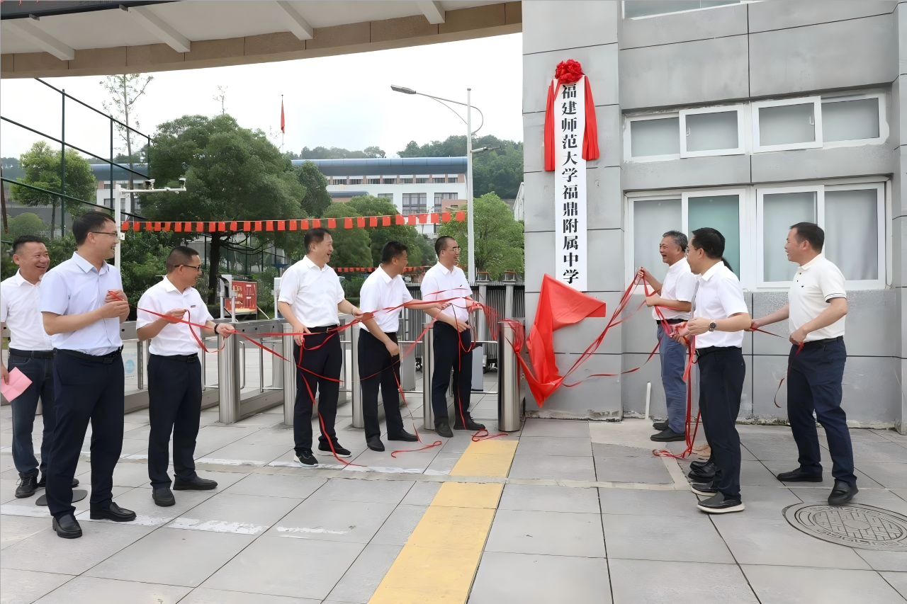 会后,双方代表共同前往福鼎六中山前校区为“必一在线平台(中国)官网福鼎附属中学”揭牌。