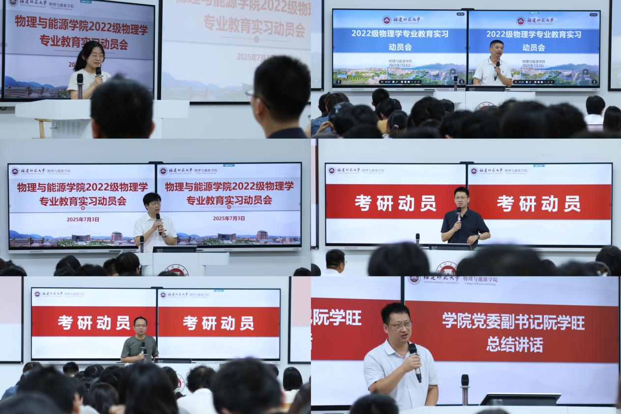 近日,物理与能源学院召开2022级物理学专业本科生教育实习考研双推进动员会。学院党委副书记阮学旺,副院长陈水源、张健敏,物理系教师代表,各实习队指导老师及2022级物理学专业全体学生参会。