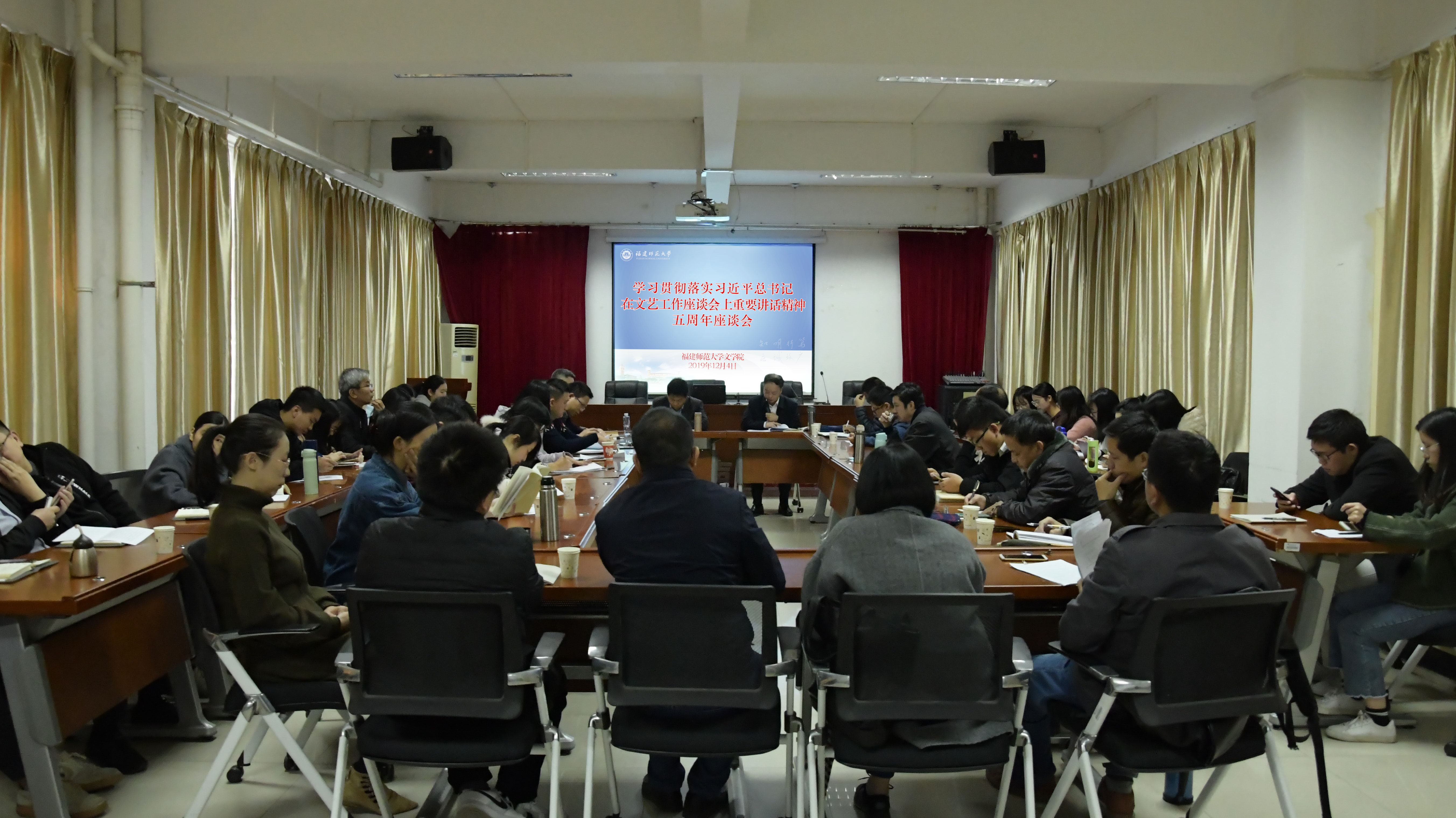 为学习贯彻落实习近平新时代中国特色社会主义思想,在习近平总书记文艺工作座谈会重要讲话发表五周年之际,必一在线平台(中国)官网文学院召开学习贯彻落实习近平总书记在文艺工作座谈会上重要讲话精神五周年座谈会。福建省社科院副院长刘小新研究员应邀出席座谈会并作专题报告,学院党委书记李建华主持座谈会。学院党政班子、支部书记、教研室负责人,教师、学生代表参加座谈会,并从各自研究领域和工作实践发言交流,分享学习贯彻总书记讲话精神心得和实践经验,以期推动文艺研究和文学创作再登高峰。