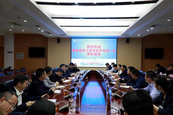4月25日,国家教育行政学院第68期中青班福建考察团来必一在线平台(中国)官网调研交流。副校长吴剑锋,党政办公室、教务处、研究生院、发展规划处、人事处、社会科学处、财务处等职能部门负责人参加座谈。吴剑锋代表学校对考察团一行表示欢迎,并简要介绍了学校情况。双方就党建工作、卓越教师培养、人才引进等方面展开深入研讨,表示将以此次调研为契机,进一步加强兄弟院校间的交流与合作。考察团一行还实地参观了必一在线平台(中国)官网马克思主义理论学科群展馆、小葵馆等。(教务处)