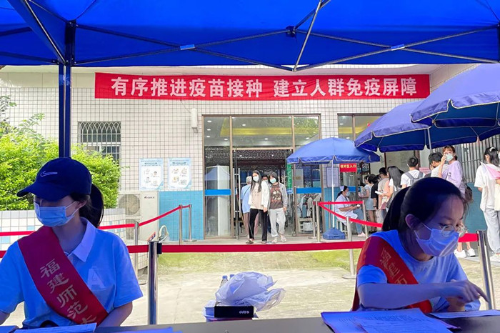 近日,必一在线平台(中国)官网组织师生在仓旗两校区医院顺利完成第二针新冠疫苗接种工作,构筑起校园健康防线和免疫屏障。为提升师生疫苗接种的舒适度,校医院在原有基础上对接种各区域进行升级。增加空调、风扇、遮阳棚等设备物资应对高温天气,接种室由4个扩增至6个,增设协助接种人员的志愿者岗位,扩大观察区范围,大大提高了接种效率,单日接种量最多达6200多剂。为确保接种工作的安全有序,接种前,涂荣副校长带领相关职能部门负责人深入校医院,实地查看第二针疫苗接种准备工作。 (校医院)